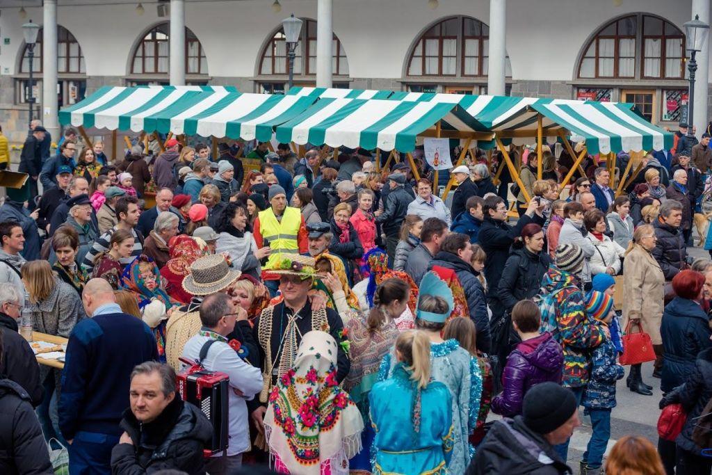 Всех, кто пришел в этот день на люблянский рынок – одну из главных площадей словенской столицы – кроме культурной программы ожидала богатая масленичная ярмарка, а также традиционные блюда русской кухни: борщ, пирожки, шашлыки, пельмени.