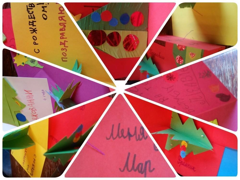 «Перед новогодними праздниками, в последний урок декабря уходящего года, мы с детьми решили сделать поздравительные открытки, и отправить детям в Русский воскресный центр при Храме Святого Андрея Первозванного в г. Неаполь (Италия).