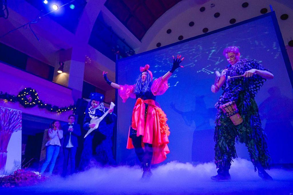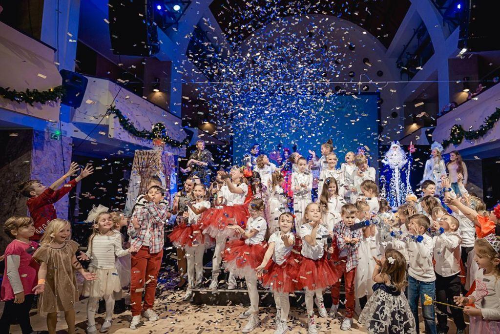 В этом году один из центральных концертных залов Любляны собрал около 500 детей и родителей из самых разных уголков Словении. Для гостей праздника ученики Люблянской школы дополнительного образования «Весёлые ребята» и «Агентства талантов «Рулада» показали увлекательный спектакль «Новогодние приключения «Весёлых ребят» по мотивам хорошо известного родителям фильма-сказки «Новогодние приключения Маши и Вити». В спектакле дети встретились с Дедом Морозом и Снегурочкой, Кощеем и Бабой Ягой, а также другими сказочными персонажами. Юные зрители искренне сопереживали с главными героями – Машей и Витей, отгадывали загадки, говорили скороговорки и танцевали, помогая им спасти Снегурочку из царства Кощея. Взрослые зрители отметили увлекательный сценарий, прекрасное музыкальное оформление, яркие костюмы, современные спецэффекты и видео-декорации спектакля. Были и такие, кто не смог удержать слез от звуков с детства знакомых мелодий.