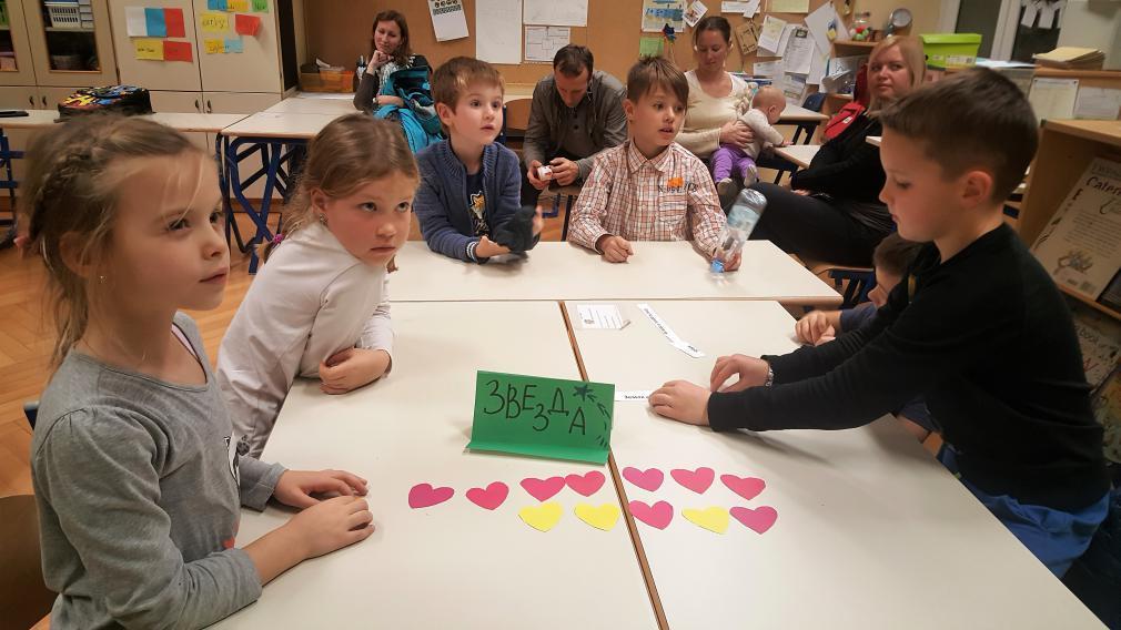 В 1А классе (учитель Анна Вячеславовна) на днях прошёл урок-викторина «Осень — рыжая лисичка». Разделившись на две команды, школьники отгадывали загадки, соревновались в чётком и быстром проговаривании скороговорок, составляли поговорки из отдельных слов и словосочетаний, отгадывали дары природы с закрытыми глазами, вспоминали различные блюда, которые можно приготовить из овощей, а также читали стихи об осени.